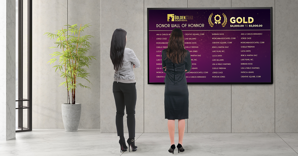 Traditional donor walls are specially made to reflect your brand and meet all your needs, but there is also a wild range in the cost of these custom-designed walls. After only a few years, your traditional donor wall may be out of style, which means you will again have to invest in either a new wall or a modernization, which is a costly undertaking.
